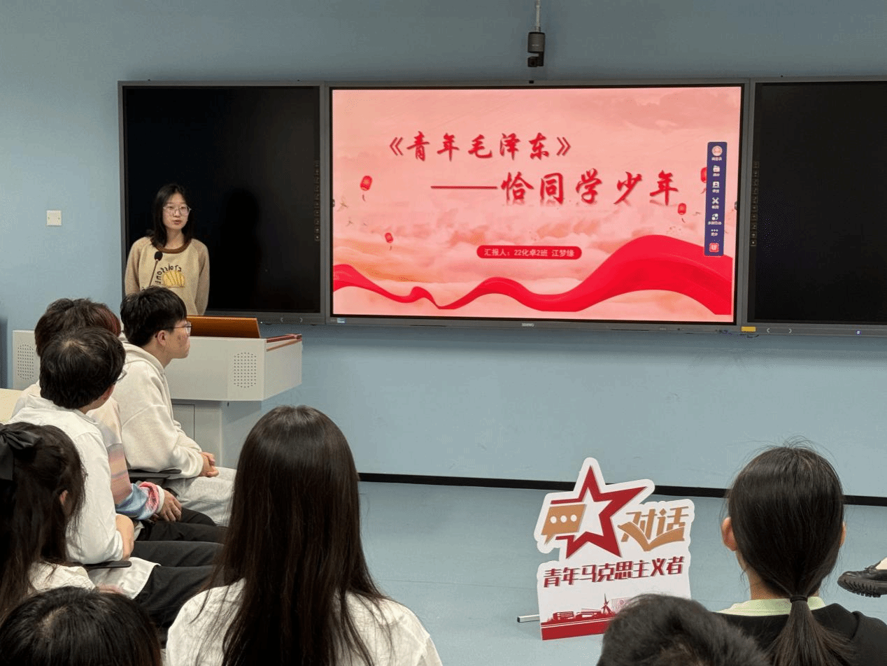 第二期“对话青年马克思主义者”读书分享会共读书籍为《青年毛泽东》。分享会伊始,刘哲带领大家学习了《习近平在纪念毛泽东同志诞辰130周年座谈会上的讲话》,深化了对毛泽东同志的丰功伟绩和毛泽东思想的历史地位的认识。应用化学系员工苏维恩等6位入党积极分子分享了各自阅读《青年毛泽东》书本篇章的体验与心得,深切地感受到老一辈无产阶级革命家的青春风采,通过从伟人身上汲取智慧和力量,更加坚定了奋楫笃行、乘风破浪的信心决心。