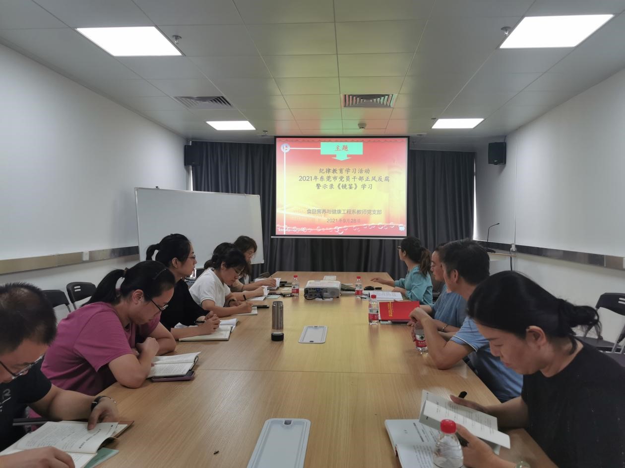 2021年9月28日,伟德国际victor1946食品营养与健康工程系教师党支部在科创院3楼食品平台会议室开展九月份主题党日活动暨纪律教育、师风师德学习,食品系教师党员参与了此次活动。