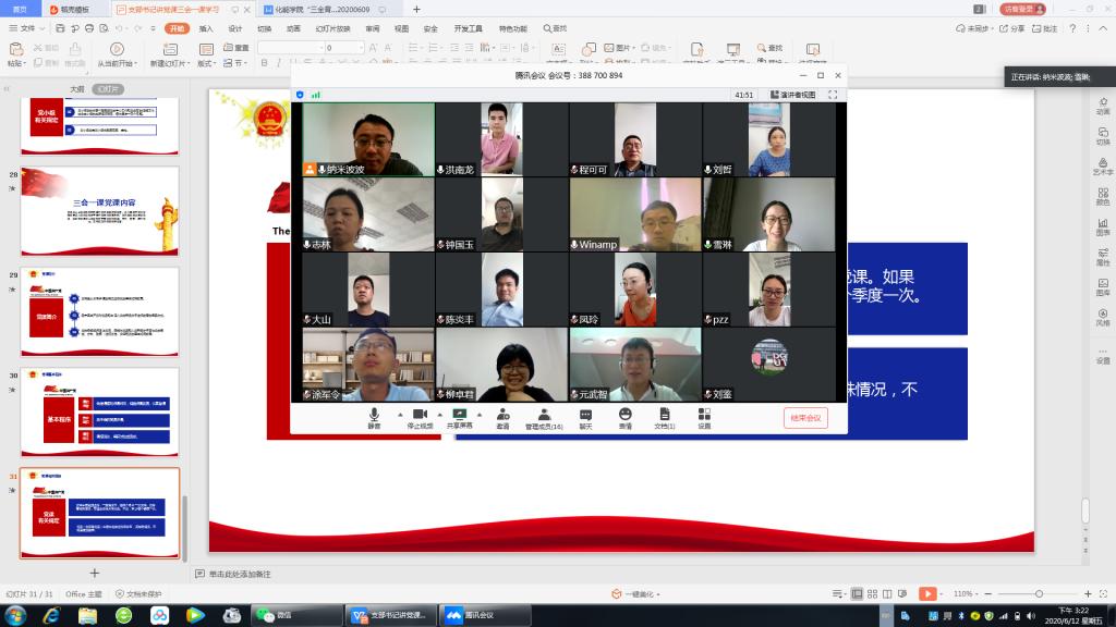 “读读报、看文件、举举手、表个态……以“三会一课”(支部党员大会、支部委员会、党小组会,党课)为主的党组织生活,该如何改变传统形式?对于党员的教育又该如何实现与时俱进?”6月12日下午,伟德国际victor1946化学工程系教工党支部齐聚线上会议室,党支部书记傅小波带领支部党员重温了“三会一课”制度内容,以《认真做好疫情防控常态化下“三会一课”》为题讲授党课。