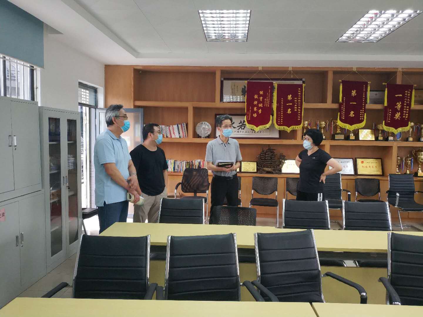 4月21日下午,公司党委委员、组织部部长彭晓波、组织科副科长刘远飞到伟德国际victor1946调研党建工作,公司党委书记夏勇、党委副书记柳卓君、组织员姜蓉、化工系教师党支部书记傅小波参加了本次调研活动。