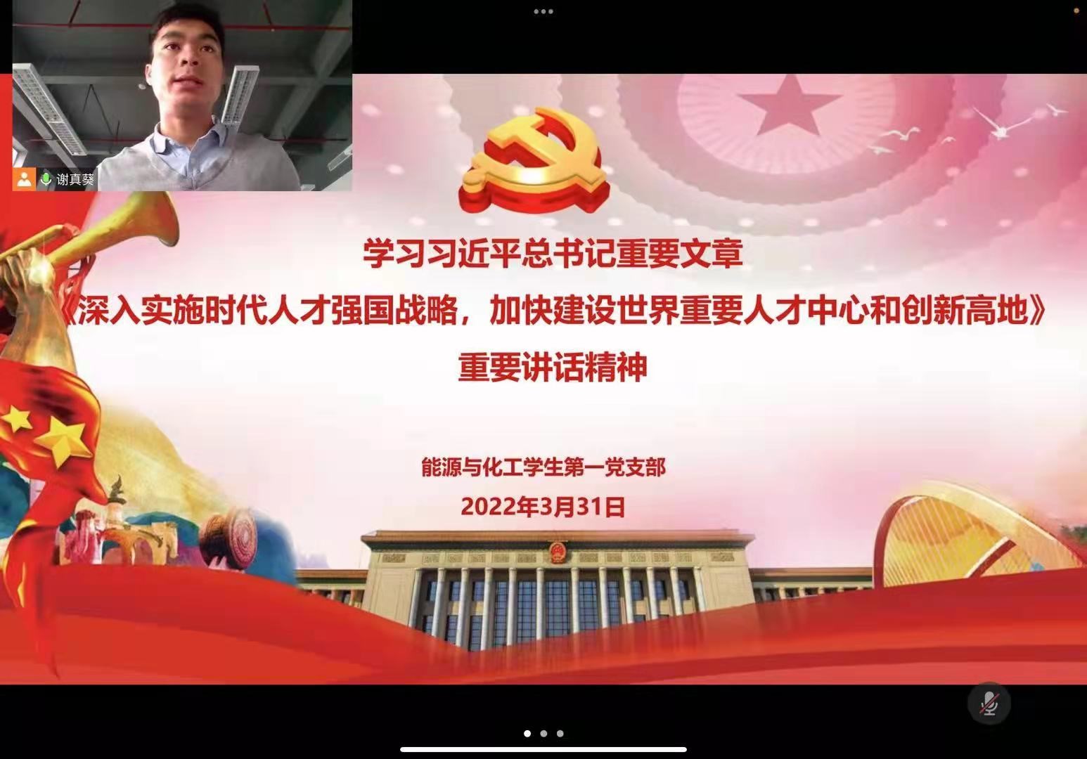 2022年3月31日下午4点,伟德国际victor1946能源与化工员工第一党支部在腾讯会议召开党支部会议,集中学习习近平总书记重要文章《深入实施新时代人才强国战略 加快建设世界重要人才中心和创新高地》,出席本次会议的有支部书记谢真葵、支部委员陈捷超、彭可文以及支部全体员工党员,会议由支部书记谢真葵同志主持。