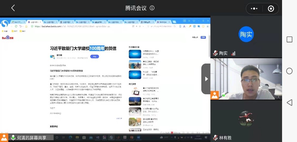 随后,支部成员集中补充学习了《习近平二〇二二年新年贺词》和《习近平致厦门大学建校100周年的贺信》,纷纷表示要始终牢记为谁培养人这一根本任务,结合区域特色和需求做好人才培养工作,推进专业教学改革。