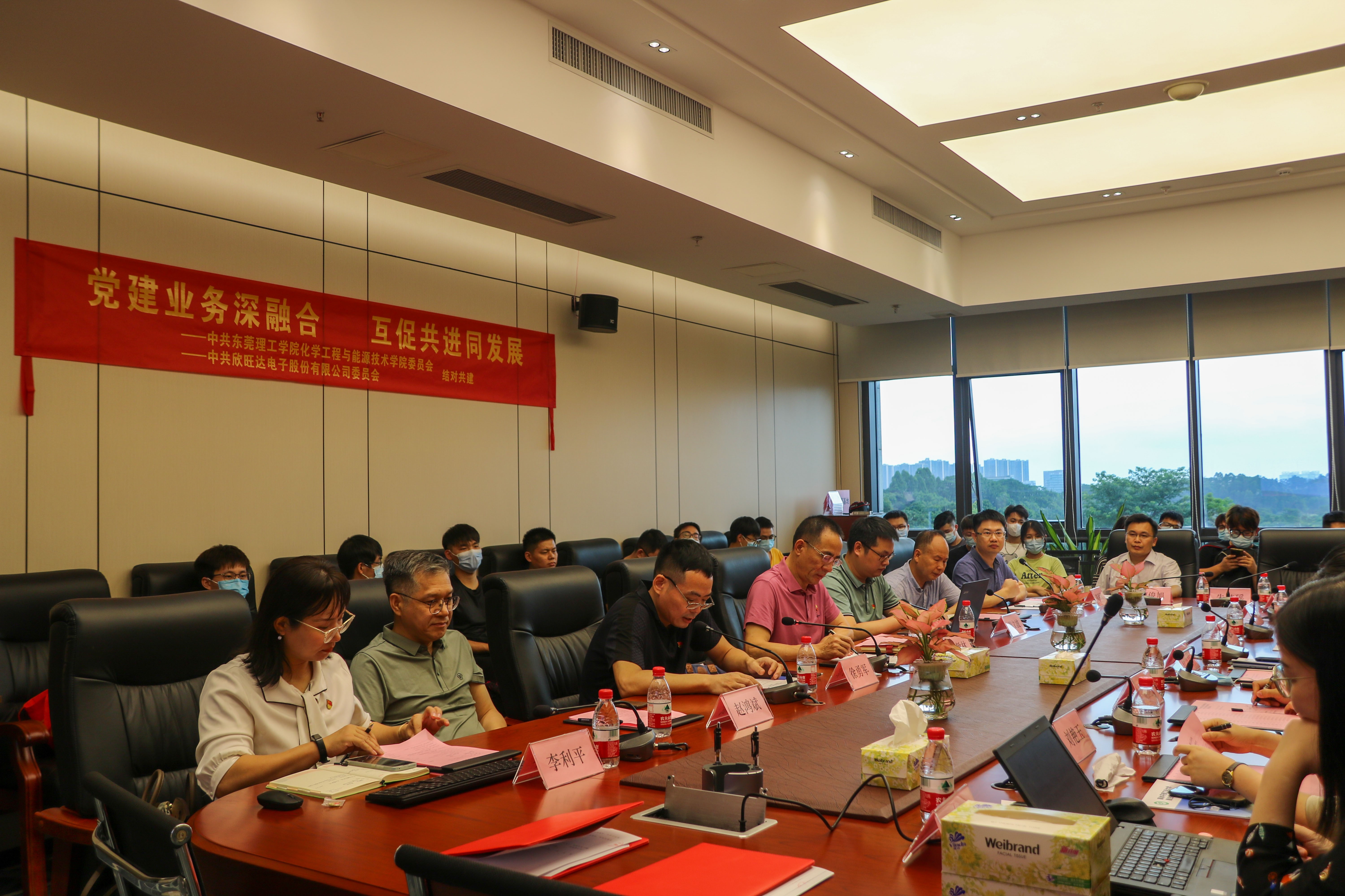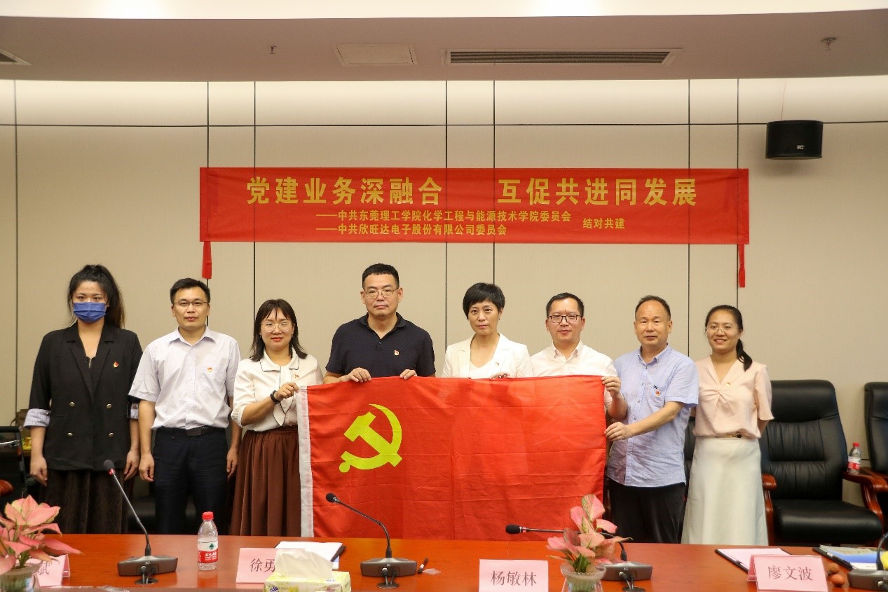 为深入学习贯彻党的十九届六中全会精神和广东省第十三次党代会精神,进一步探索高校二级公司党建共建新模式,促进党建业务深度融合,7月6日,伟德国际victor1946化党委(以下简称“公司党委”)与欣旺达电子股份有限公司党委开展“党建业务深融合,互促共进同发展”结对共建活动。公司党委委员、副董事长杨敏林,公司党委书记、经理徐勇军,党委副书记李利平、副经理陈佰满,教务处副处长廖文波、伟德国际victor1946教授老师、教师党员代表、员工代表,欣旺达电子股份有限公司党委书记、总裁助理、欣旺达大学执行董事长尹庆玲、欣旺达惠州动力新能源有限公司制造副总经理刘桂松以及欣旺达电子股份有限公司党建专员等参加本次结对共建活动。