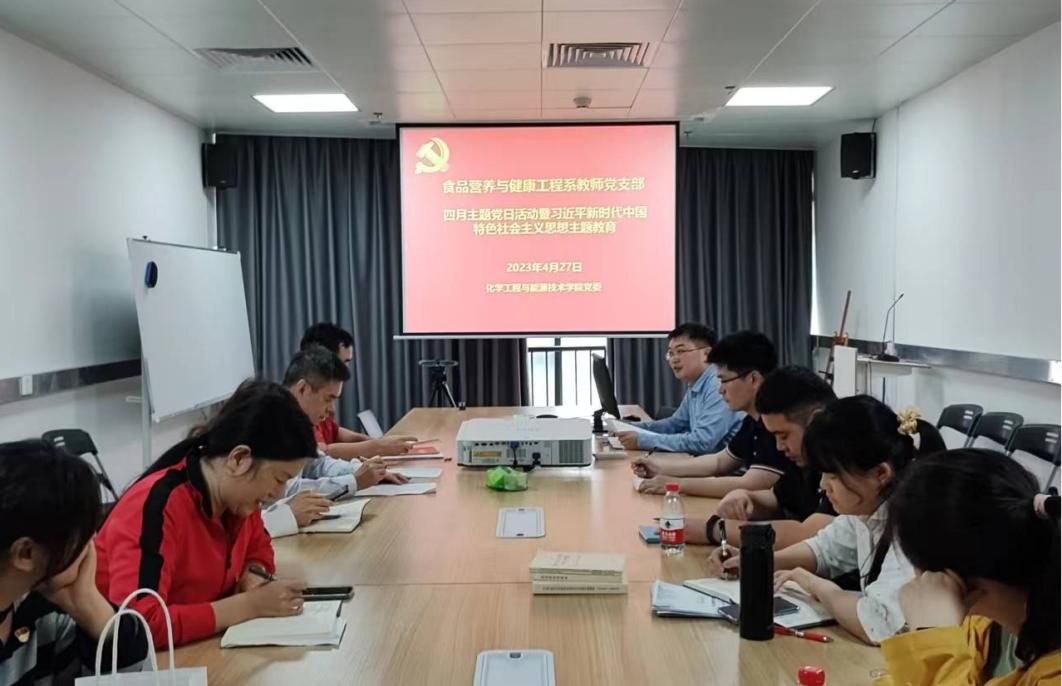 2023年4月27日,食品营养与健康工程系教师党支部在科创院3楼310会议室开展2023年度四月份主题党日活动。会议由支部书记闫景坤主持,支部全体党员参加。
