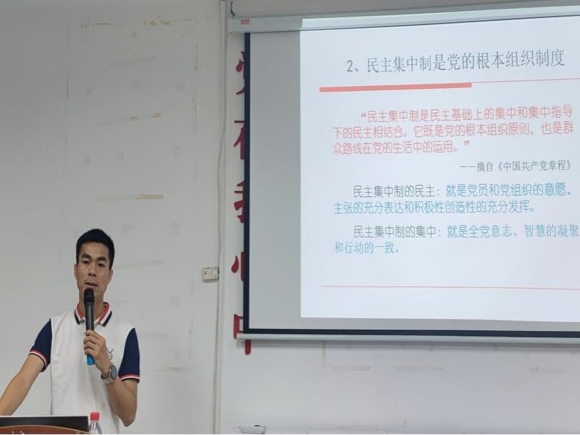 课上,谢真葵老师围绕“党的组织制度、组织机构和党的纪律”进行了讲授,并勉励同学们要严以律己,遵纪守法,模范执行党的各项纪律。时刻把党和人民的利益放在首位,严格遵守党纪国法,坚持高尚的精神追求,永葆蓬勃朝气、昂扬锐气和浩然正气,在实际行动上发挥先锋模范作用。