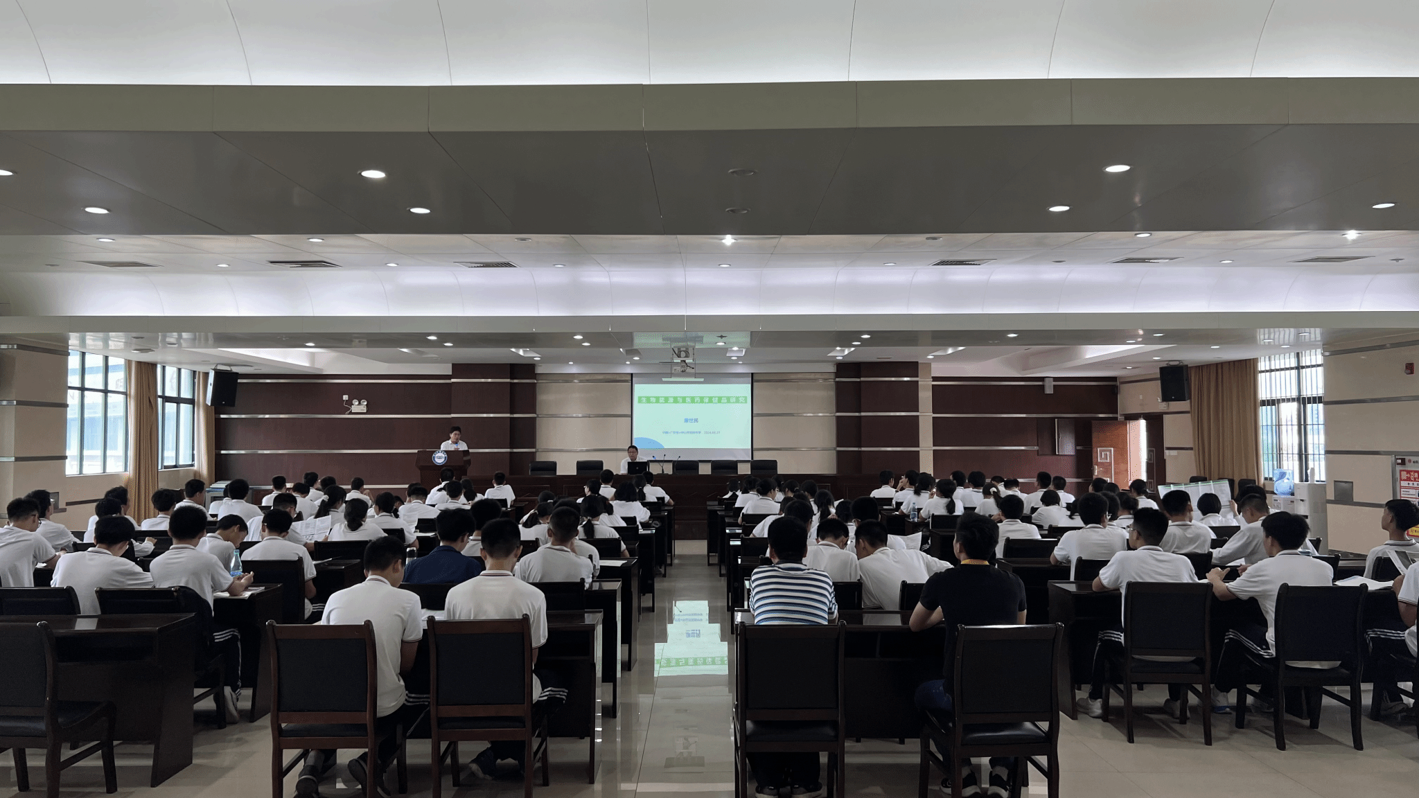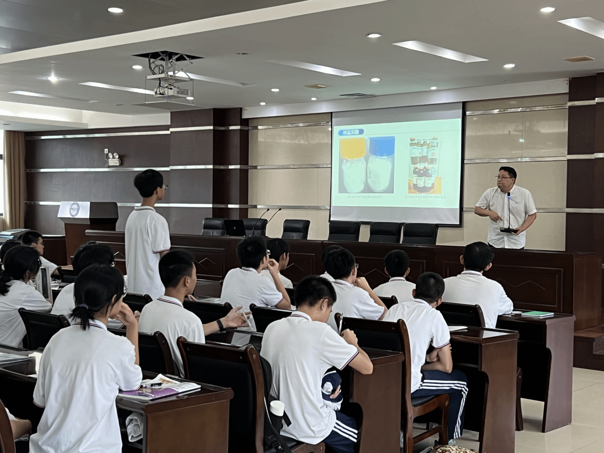 在中山市实验中学,公司康世民副研究员以《生物质能源与医药保健品研究》为题,向高中生科普了生物化学领域的相关知识并介绍了最新研究成果。康老师用生动幽默的讲述为同学们带来了一场精彩纷呈的科普讲座,激发了同学们对公司本科专业,尤其是化学类专业的兴趣与向往。康老师的科普讲座受到现场员工的热捧,活动结束后仍有部分员工走到康老师身边表达对生物医药方面的浓厚兴趣。康老师借此机会鼓励同学们多读书,多思考,争取成功考上自己理想的大学和专业。