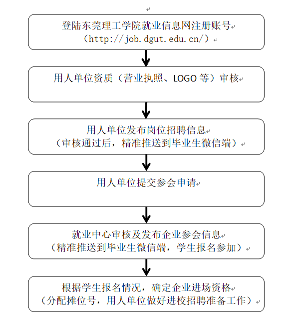 本次活动将提供线上线下同步招聘服务。各用人单位请于10月30日前登陆公司就业信息网(http://job.dgut.edu.cn/)【发布招聘信息】,报名【参加招聘会】;11月1日,公司将根据员工报名情况审核确定线下入场资格。
