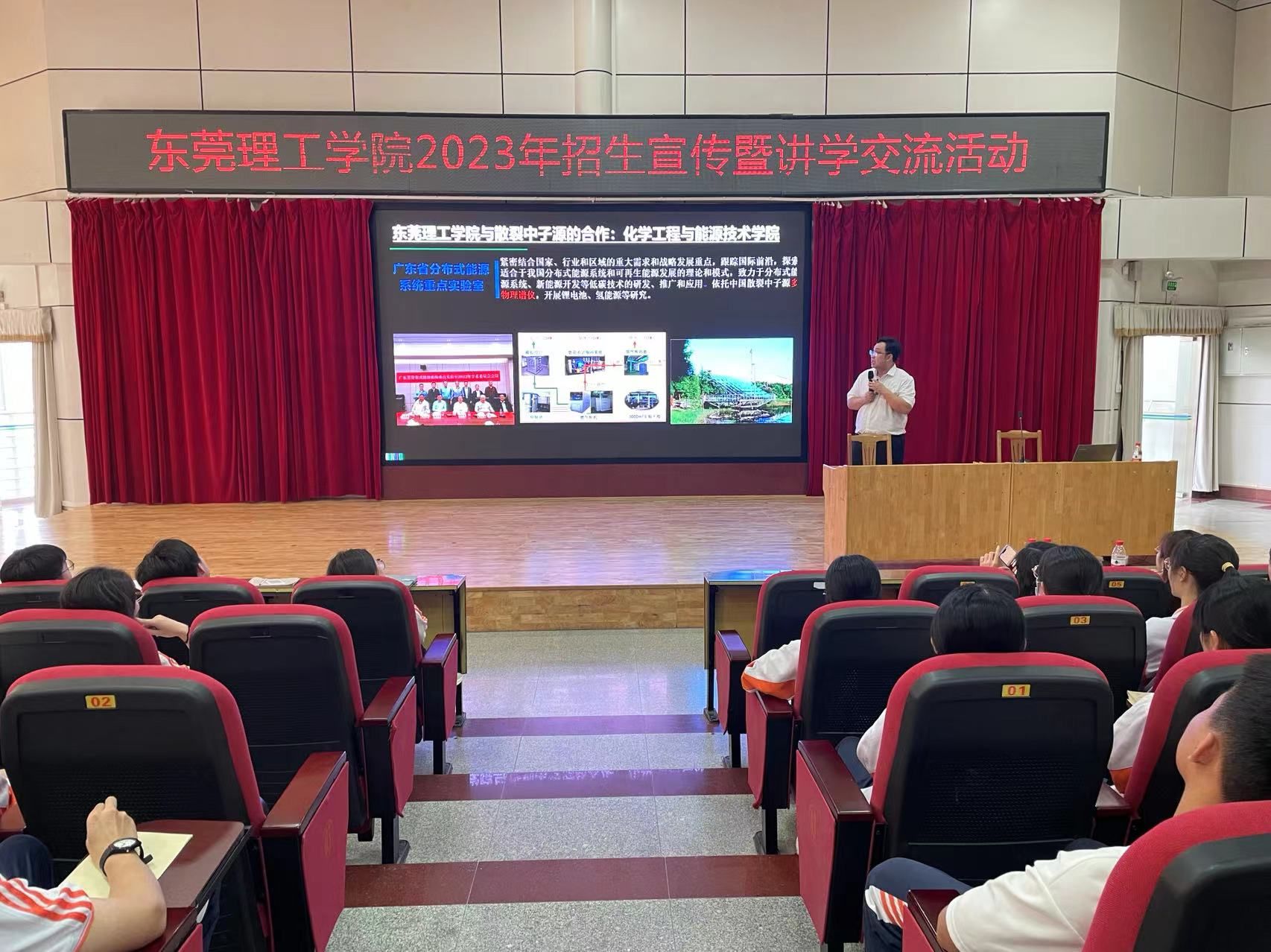活动期间,机械公司党委书记郭建文作题为“散裂中子源与松山湖科学城”主题宣讲,结合松山湖近年来经济、科技发展情况,并就公司、公司相关信息做了详细介绍,龙川县第一中学高二年级员工约200余人参加本次活动。