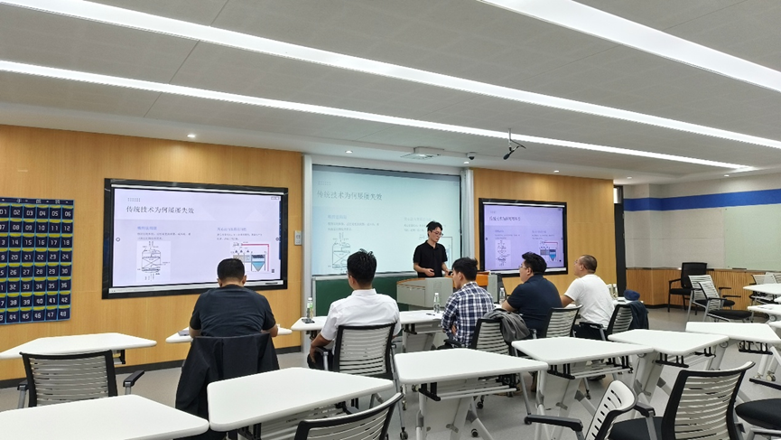 为深化产学研融合,提升研究生工程实践能力,公司组织2025级能源动力专业学位硕士研究生进行了为期三个月的选题实践。10月23日,为检验研究生选题实践成果,系统展示校企合作育人成效,公司组织开展了2025级能源动力专业学位硕士研究生选题实践汇报。本次汇报邀请了中国科公司工程热物理研究所、“吴仲华班”联合导师韩东江特聘研究员,广东威能检测技术有限公司副总经理朱华,广东迪奥应用材料科技有限公司总经理黄华凛,东莞市秦简计算机系统有限公司首席技术官罗侍田,东莞市美泰喷雾技术有限公司总经理张巍,与校内导师共同组成“学术+产业”双轨评审小组,对员工三个月的选题实践成果进行集中检验。