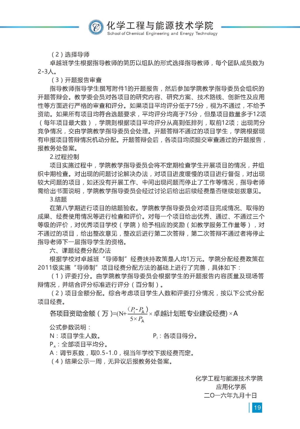 应用化学卓越计划