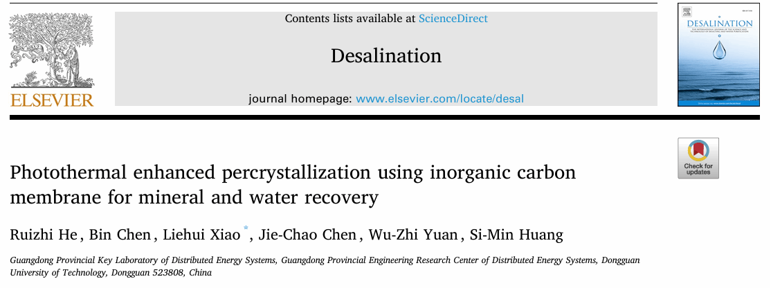 2023级能源动力硕士研究生何睿智以论文第一作者在国际权威期刊《Desalination》(中科院1区)上发表题为“Photothermal enhanced percrystallization using inorganic carbon membrane for mineral and water recovery”学术论文,肖烈晖博士为通讯作者,伟德国际victor1946为第一完成单位。