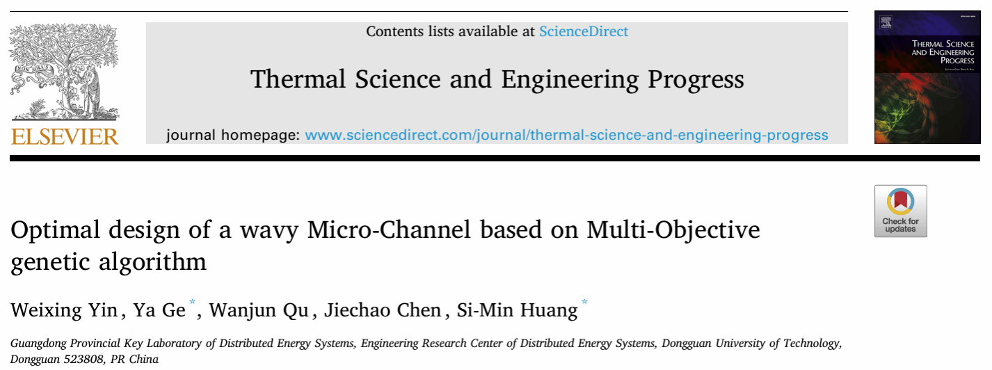 2023级能源动力硕士研究生尹炜星以第一作者在国际知名期刊《Thermal Science and Engineering Progress》(中科院2区)上发表题为“Optimal design of a wavy Micro-Channel based on Multi-Objective genetic algorithm”学术论文,黄斯珉研究员和葛亚副教授为共同通讯作者,伟德国际victor1946为第一完成单位。