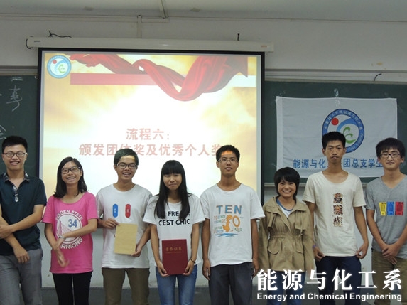 10月18号下午16:30,历时两天的第三届团总支员工会干事培训在教学楼7B205圆满结束,第三届团总支员工会全体成员参与本次培训。 早上,为了让新干事们尽早熟悉部门工作和提高干事们的综合能力,团总支组织干事学习两节课程《电子相册制作》与《策划书的编写》,由组织部前部长车伟武,组织部部长叶志辉和外联部部长潘政宏授课。通过两节课的认真学习,新干事们对制作电子相册和编写策划书有了初步的认识,并显示出浓烈的兴趣。 下午2点40分,能源与化工系团学干事拓展培训总结大会在7B205举行。大会由办公室主任张志刚主持。 大会上各个小组进行团队展示,花样千奇百怪,内容层出不穷,令人捧腹大笑,课室里一片温馨与和谐。随即紧张的计票过程中,团委副书记冯育维和团学主席朱红阳进行讲话,总结了两天的干事拓展培训。然后终于到了激动人心的的颁奖仪式,主席朱红阳与副主席古峤分别为优秀团队和优秀干事颁奖。最后,干事发言并合唱《我们正年轻》与合影留恋,结束两天的干事培训。 虽然为期两天的干事培训结束了,但是干事们学到的团结协作,干事们的交流不会结束。经过这两天的干事培训,所有的人一定收获很多,学到很多。经过两天的干事拓展培训,能源与化工系大家庭将越来越团结,越来越精彩。能源化工,勇攀高峰! 评委团 精彩的表演,大家笑不拢嘴 获奖团队 合影留念