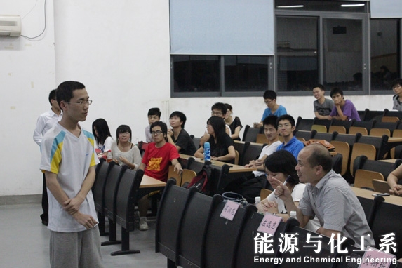 5月19日晚上,于6E307教室举行了由能源与化工系承办的节能减排大赛决赛暨颁奖大会。进入决赛的一共有6支队伍,分别来自能源与化工系和机械工程公司。此外,出席大会的老师有蒋老师、左老师、黄老师以及能源与化工系党总支书记张敏和团总支书记谢真葵。