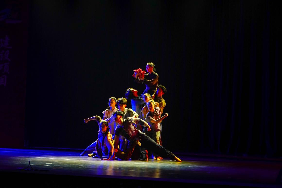 《红脐情》以东莞地域红色文化东江纵队革命母亲李淑桓送子参军为创作点,以母子之“脐”表达英雄母亲舐犊之情、家国情怀和革命胜利的理想信念,歌颂千千万万东江儿女在革命斗争中抛头颅、洒热血,留下了光照千秋的革命历史和革命精神。舞蹈演员们的舞姿优美动人,引人人胜,深沉而又灵动地晕染出一幅幅壮丽且充满浪漫色彩的革命史诗。这支由教育公司(师范公司)友情出演的舞蹈作品,具有强大艺术感染力和精神鼓舞价值,曾在广东省传统舞蹈大赛中获得专业组三等奖。在跌宕起伏的舞蹈画面中,引发了师生观众身临其境般的沉浸与共鸣。