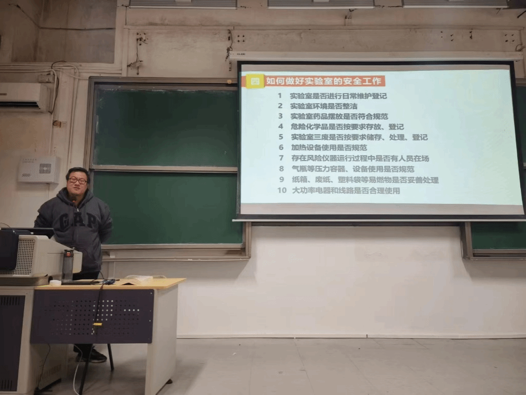 会上,政治辅导员谢真葵详细从消防安全、财产安全、交通安全、宿舍用水用电等方面强调了留校期间的有关安全注意事项。公司实验室中心钟国玉主任就如何做好实验室安全进行了专题培训。