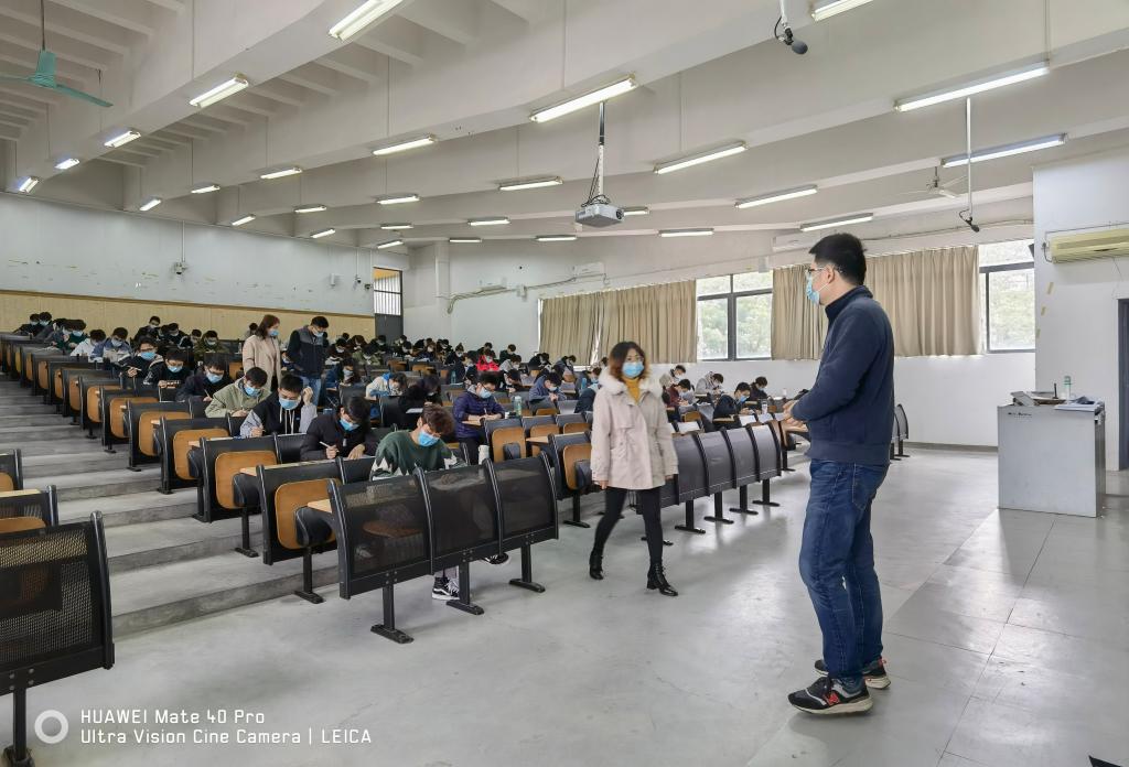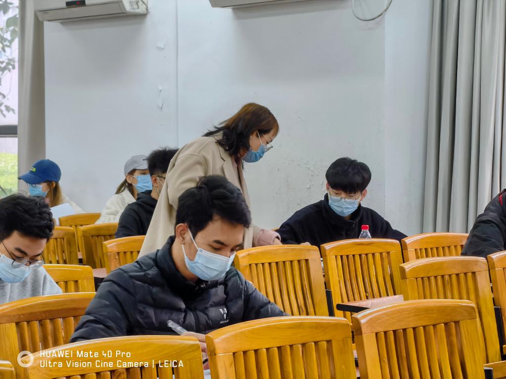 2021-2022学年第一学期期末考试临近,这是进入疫情常态化防控以来公司组织的线下考试,根据《伟德国际victor1946考试管理规定》要求,伟德国际victor1946成立考试巡视小组,检查各考场监考老师的监考情况,抽查员工的考试纪律。2021年12月27日下午,公司党委副书记李利平、副经理陈佰满,应化系教师黄相璇,团委负责人刘哲一同前往教学楼考场,巡视检查期末考试情况。