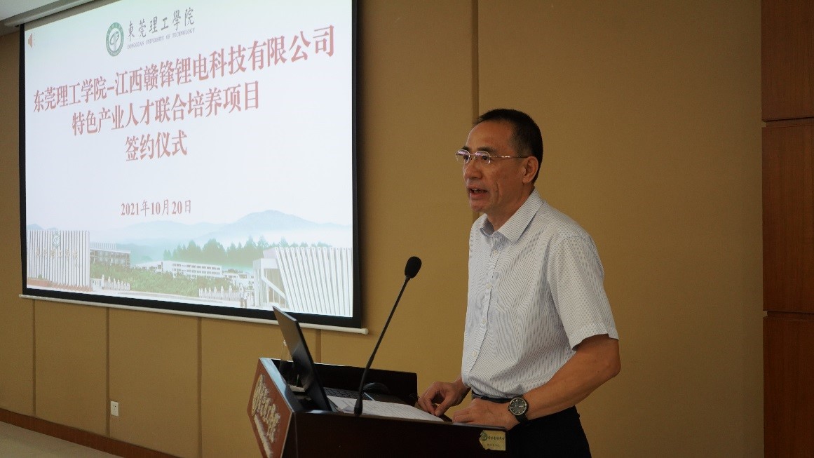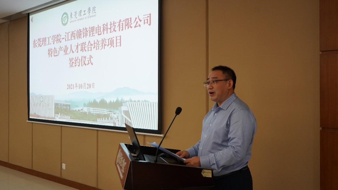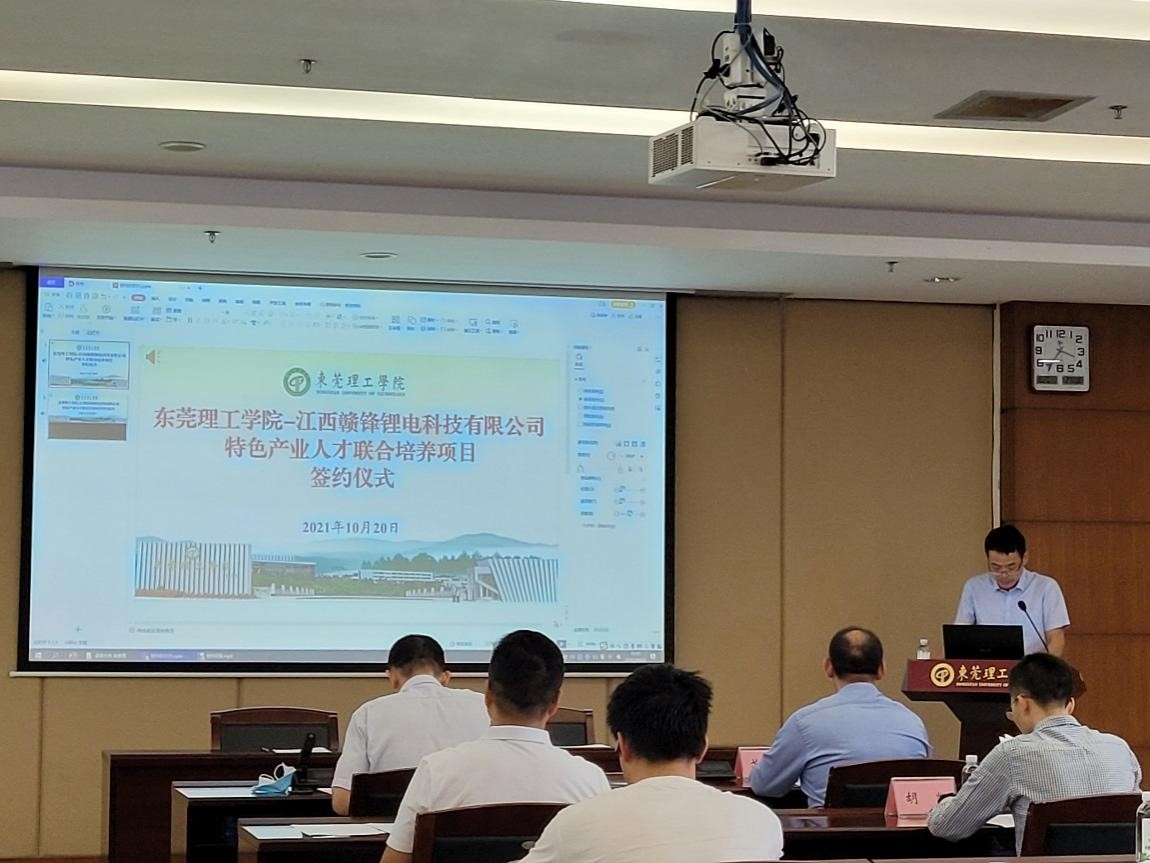 徐勇军经理对江西赣锋锂电科技有限公司的到来表示热烈欢迎。他表示,赣锋锂电公司作为全球领先的锂盐和锂电池制造商,公司实力雄厚,在东莞、惠州等地建设有多个生产研发基地。此次签约对于双方是一件可喜可贺的大事,双方合作迈出实质性一步,标志着公司在应用型人才培养方面又一次探索和创新。围绕本项目,开设多门产业理论和实践课程,实训实习项目,员工在岗实操,校企双导师毕业设计等一系列举措。针对项目内员工,公司还设立奖助学金体系以及丰厚的实习待遇。目前该项目已在2020-2021学年招收28名产业班级员工。