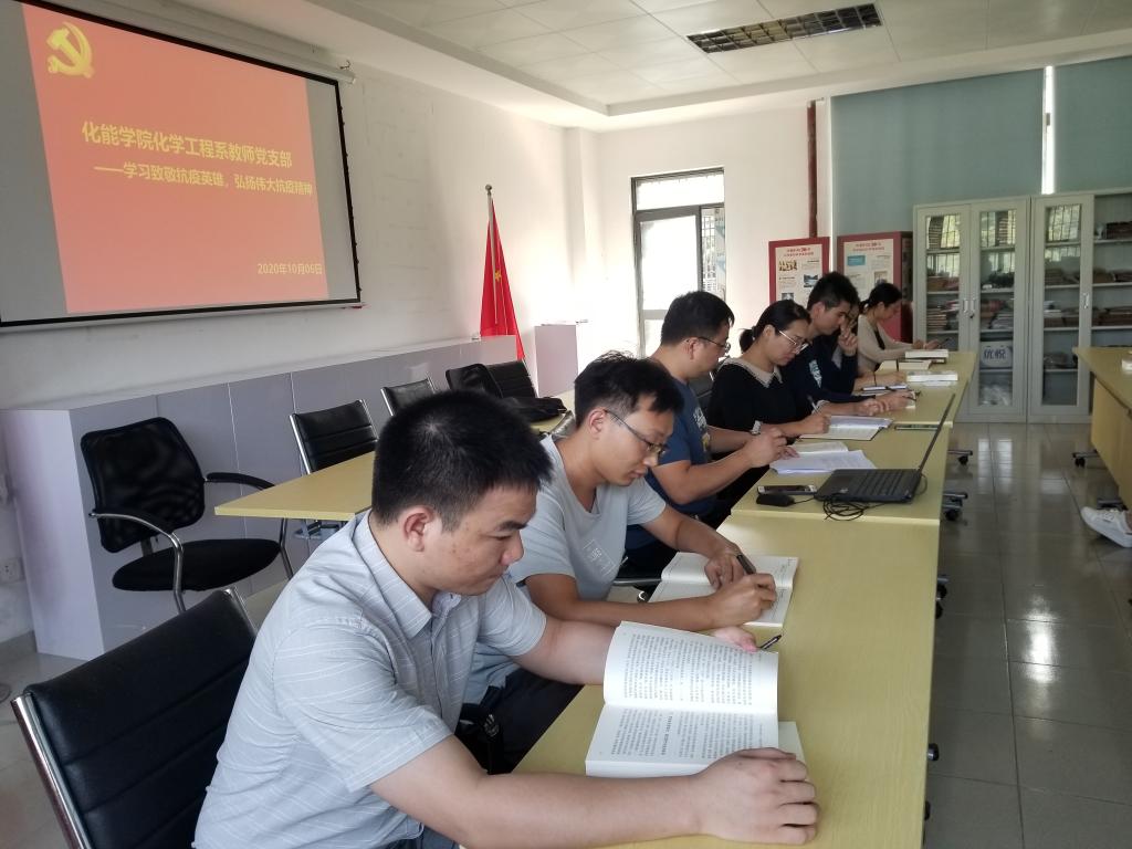 为深入学习习近平总书记在全国抗击新冠肺炎疫情表彰大会的重要讲话精神,弘扬抗疫精神,10月6日下午,公司化学工程系党支部在机电化学楼12L102开展“学习致敬抗疫英雄,弘扬伟大抗疫精神”主题党日活动。会议由化学工程系教师党支部书记傅小波主持。