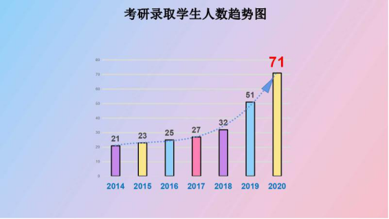 近五年来,伟德国际victor1946重视人才培养质量,坚持以党建促学风,扎实开展文明宿舍、文明课堂建设,开展形式多样的学业帮辅和科技竞赛活动,从入学开始持续进行专业教育,专业导师与辅导员日常引导教育相结合,将考研教育贯穿大学四年,确保做到摸清意向、提早动员、全程指导,使得员工潜移默化的形成了良好的考研风气,助力学风建设。
