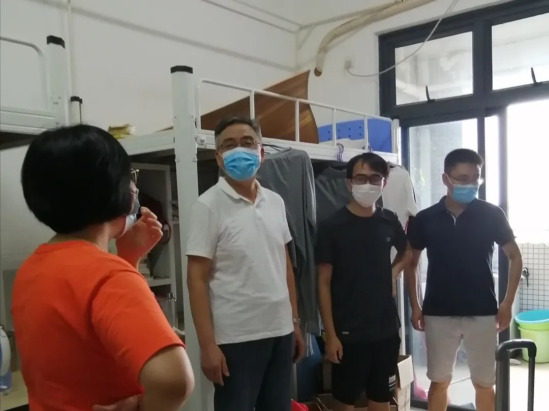 下午,公司党委书记夏勇、党委副书记柳卓君与辅导员、班主任代表分别走访了员工宿舍,嘱咐返校注意事项,询问员工们的身体状况与网课学习状况,并仔细聆听同学们的反馈。