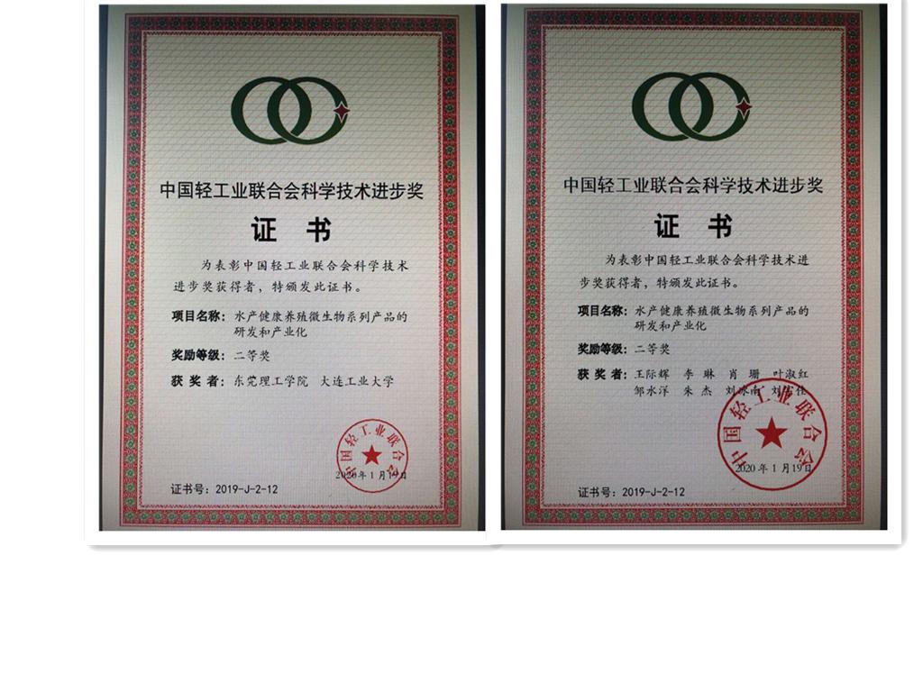 近日,由伟德国际victor1946王际辉教授主持的“水产健康养殖微生物系列产品的研发和产业化”项目获得2019年度中国轻工业联合会科技进步二等奖。
