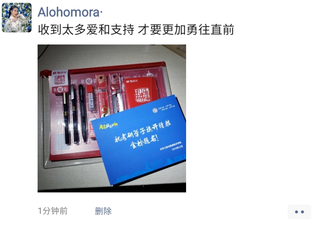 浓郁的考研氛围、身边榜样的激励、师生关切的祝福,大方实用的礼物……无不体现着伟德国际victor1946对考研学子细致的关怀与殷切的期盼。收到公司的慰问,同学们纷纷表示定会牢记老师们的嘱托,竭尽全力进行考研的最后冲刺,不辜负公司对自己的栽培,不忘初心,不负韶华。