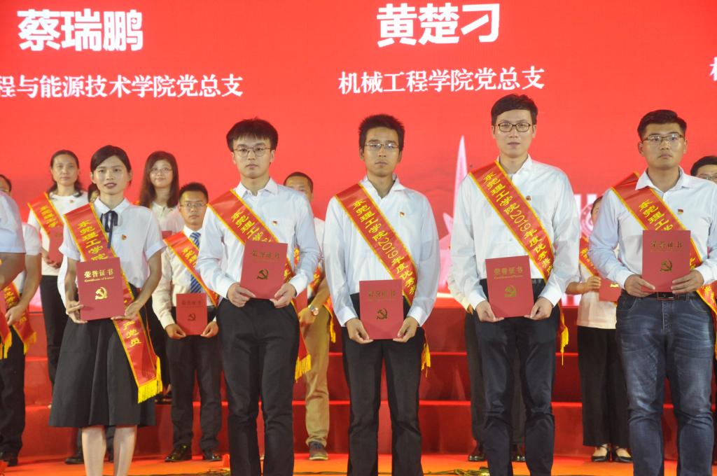 雄壮的国歌,拉开表彰活动序幕。本次活动共表彰了全校52名优秀党员、10位优秀党支部书记、10个优秀主题党日和10个优秀微党课视频,其中伟德国际victor1946喜获多项表彰。校领导成洪波、马宏伟、赖日辉为获得者颁奖。获奖名单如下: