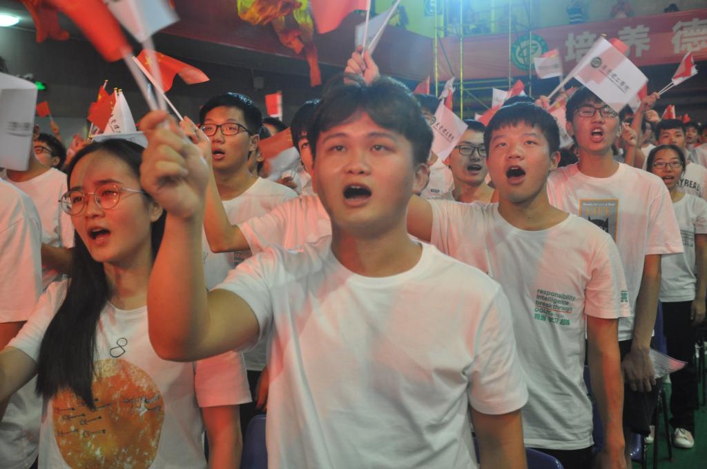 庄重的表彰仪式结束后,进入决赛的8支队伍逐一登台演唱红色经典歌曲。伟德国际victor1946合唱队以一首《祖国给我理想》压轴登场,震撼全校。100余名师生组成的“硬核”队伍中,书记夏勇、经理徐勇军等公司党政领导班子全部带队登台。随着朗诵激昂的推进,台下全体化能学子起立,挥动着手中的小旗,欢呼阵阵。台上台下,交相呼应,共同喊出“以青春之我,创建青春之理想,青春之国家,青春之民族“的理想和决心,洪亮的口号震荡在每个人心中,滂湃的歌声响彻在校园上空。