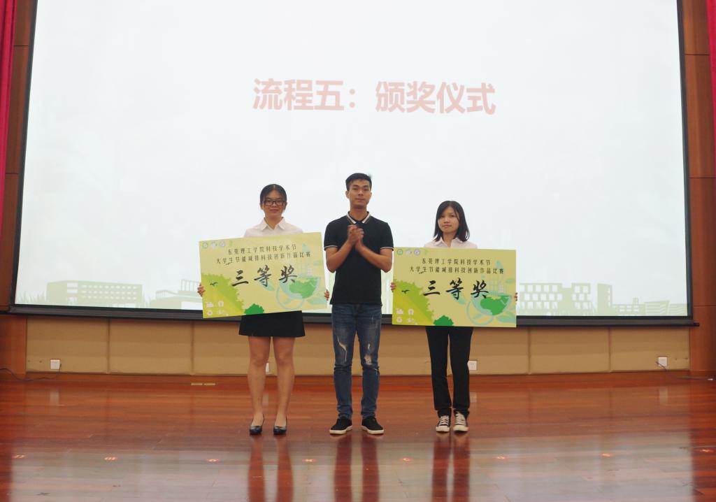 参赛作品类别分为设计理念类与科技实物类两种,各有六支队伍进行角逐,比赛过程分为PPT展示与答辩两个环节。在PPT展示中,每支队伍通过对参赛作品进行展示和其构造原理的讲解,充分准确地运用专业知识将自己团队作品的创新独特的设计理念和竞争优势毫无保留地展现给各位评委与在场的观众。他们严谨的科学态度、新颖的创业理念以及团队的合作精神博得评委们的一致好评和观众们的热烈掌声。在答辩的时候,面对评委提出的一个个专业性十足的问题,参赛队员也都能够用专业知识一一进行回答。