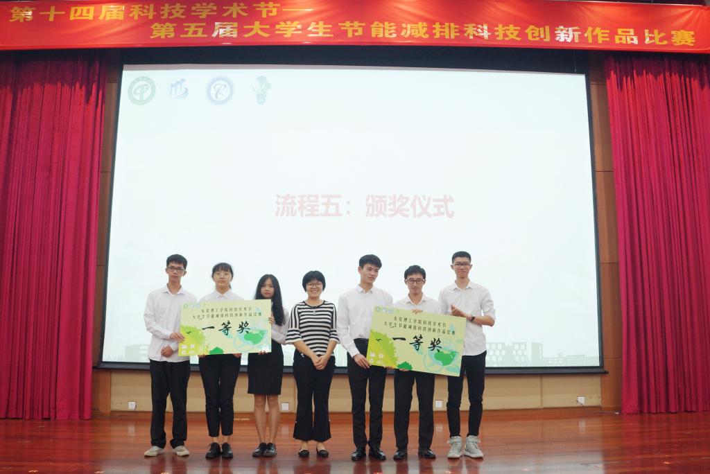 经过激烈比拼,《一种回收LNG汽化相变冷能机动式蓄冷车厢》项目团队和《金属手机外壳的发电功能》项目团队分别获得科技实物类一等奖和设计理念类一等奖;《一种基于空气源热泵技术的节能保温餐车》项目团队和《源于新能源汽车的能量回收系统》项目团队分别获得科技实物类二等奖和设计理念类二等奖;《资源化利用城市垃圾焚烧飞灰制备环保建材》项目团队和《一种城市分布式垃圾自动回收处理系统》项目团队分别获得科技实物类三等奖和设计理念类三等奖;《基于热电制冷技术的汽车座椅冷却系统》、《磷酸铁锂的低温合成技术及开发应用》和《一种用于污泥干燥的热发生子系统设计》项目团队获得科技实物类优秀奖,《一种余热回收发电装置》、《造纸污泥热泵干燥系统》、《工业蒸汽机组乏汽增压回收系统设》项目团队获得设计理念类优秀奖。柳卓君、左远志、谢真葵、何清分别为获奖团队颁奖,并合影留念。