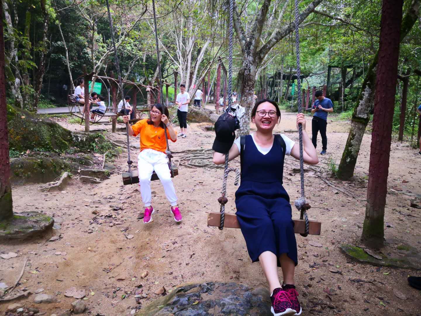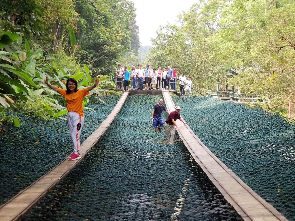 活动行程不仅包括了在景色秀美、空气清新的山庄里放松身心的项目,例如国医国药温泉、国际体育公园、元气森林、现代体验农场、欧亚集市等,也安排了爬山“洗肺”摘果农家乐,生态文化体能训练等寓教于乐的项目。在国家AAAA级景区,背靠河源第一高峰的桂山,伟德国际victor1946教职工们畅游十八里“花溪”,在生态文化体能娱乐区荡秋千、坐跷跷板、高空滑梯、抢夺“泸定桥”等多种运动及拓展项目,玩累了就躺在吊网床上休息。