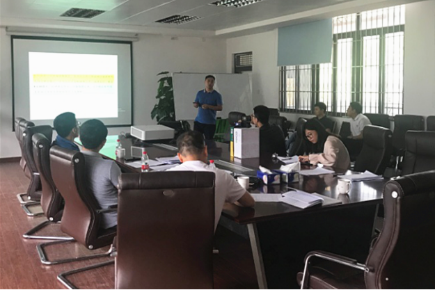 2019年教师岗前培训由公司首次自主举办,参训教师依次将考核纸质材料交与三位考核专家,同时进行五分钟的当场课堂试讲,考核专家对每个参训教师的教研实习材料和现场试讲进行综合考核评分。