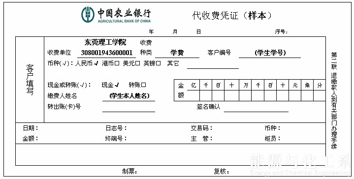 1、公司现委托中国农业银行股份有限公司东莞松山湖支行代收,公司银行94账号:44308001941000106;请各位同学到广东省内(深圳除外)的中国农业银行任何一间网点按时缴交学费,并保留交款单备查。