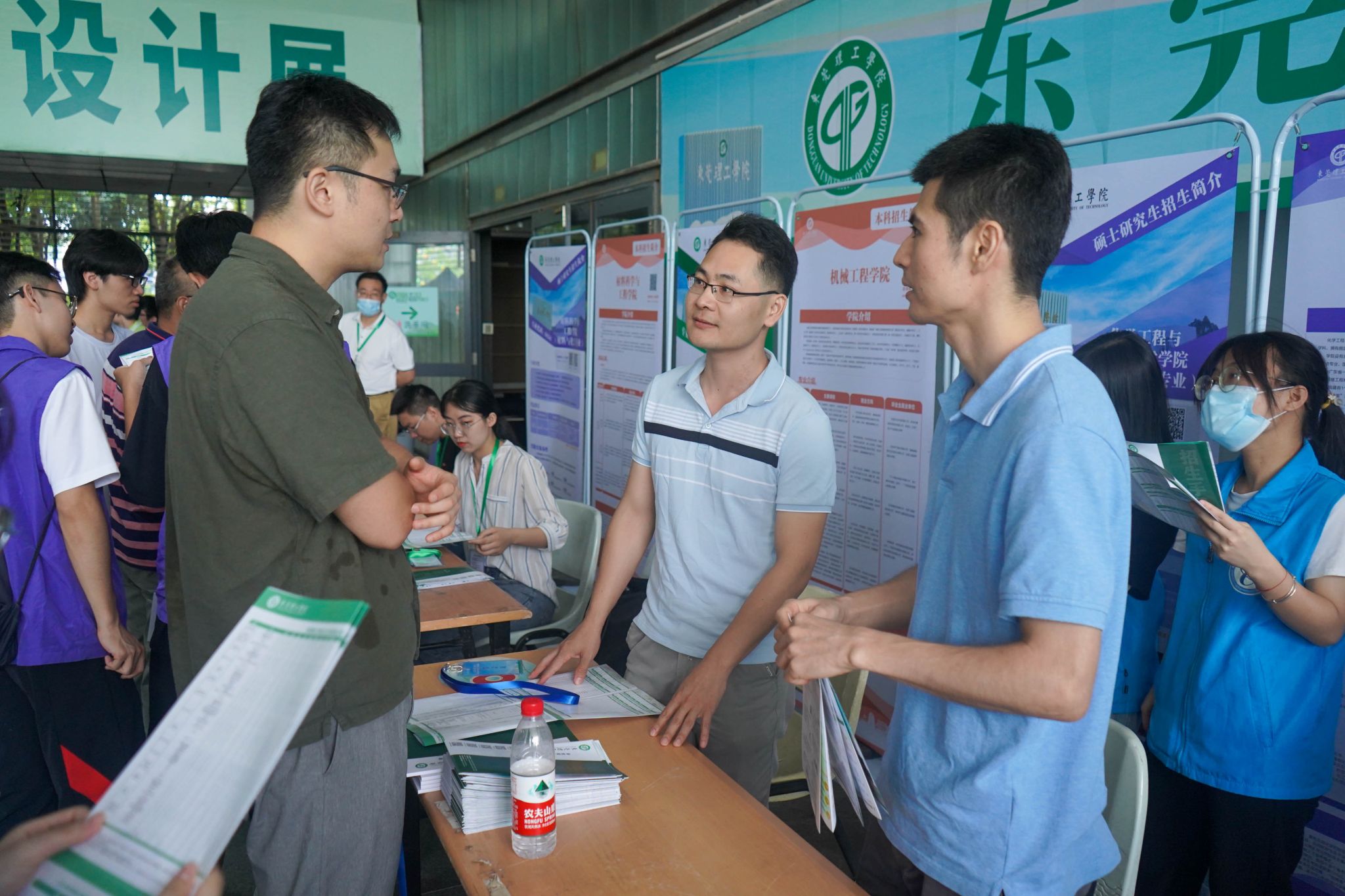 此外,在图书馆设有公司及各二级公司的咨询点和其他广东地区的高校资讯点,咨询展台气氛火爆,人流熙攘。考生和家长针对自己的兴趣和成绩等具体情况,来到对应的院系前进行咨询,现场工作人员和师生志愿者热心、耐心且细心,对咨询者的问题作出细致准确的回答。