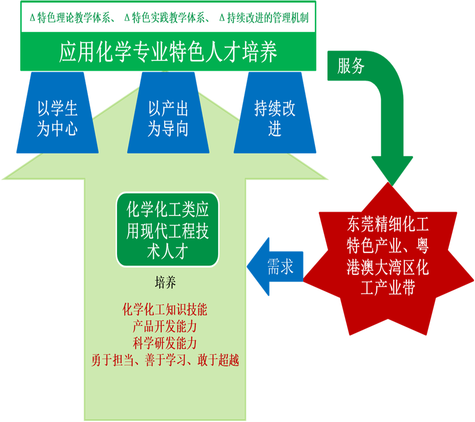 依据公司办学定位和人才培养总目标,坚持知行合一、立德树人,契合粤港澳大湾区化工产业集群及东莞地方经济发展需求,着力培养勇于担当、善于学习、敢于超越,能在化学及相关领域从事应用研究、技术开发、工艺优化、科学研究等工作的具有国际化视野和现代工程师素养的应用型创新人才。